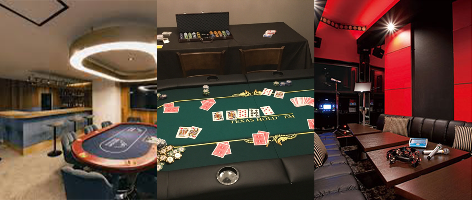 本格ポーカーテーブルを備えたポーカールームやカラオケルームを用意しており、 滞在の夜をより特別な時間へと演出します。